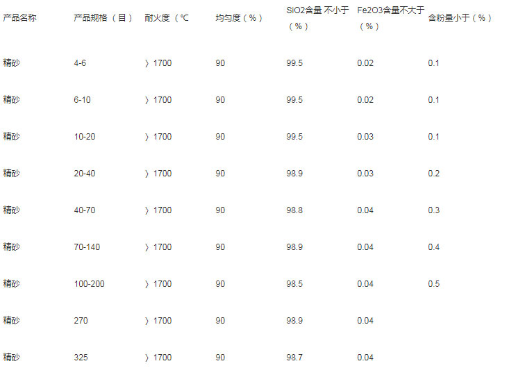 精制石英砂物理与化学性质 二氧化硅SiO2≥99—99.5% 三氧化二铁Fe2O3≤0.02—0.015%,。