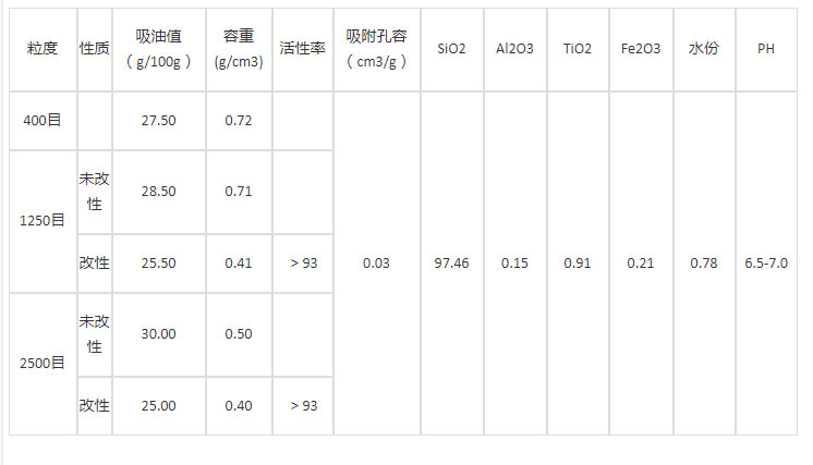 其物化性能指标如下: